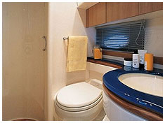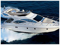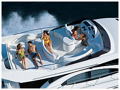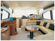 Моторная яхта Азимут 46 с флайбриджем (с солнечной палубой) престиж-класса 2004 года с экипажем на борту - 2 человека.